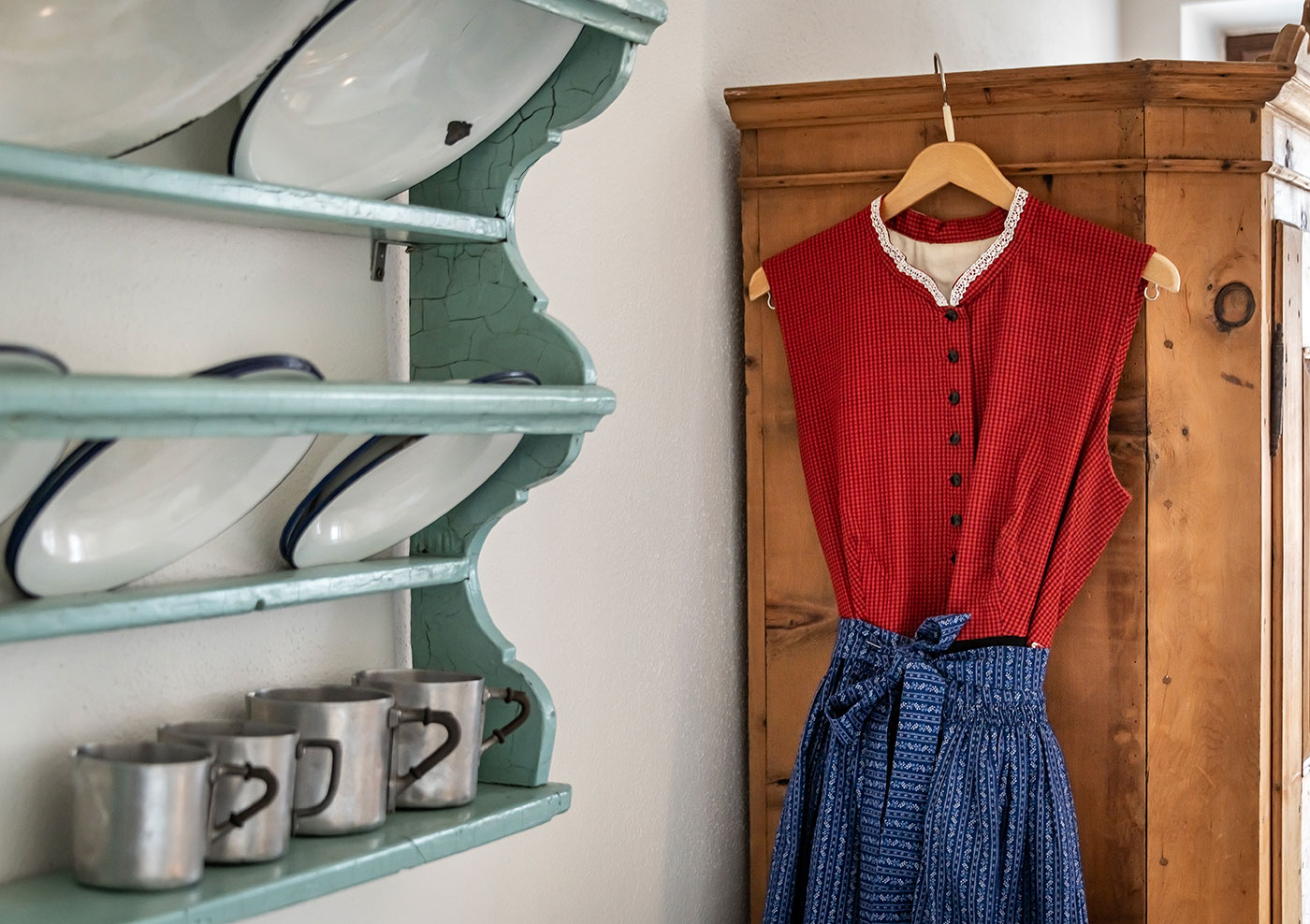 Die Ferienwohnungen sind individuell im Retro- und Vintage-Stil eingerichtet und spiegeln den Charakter des alten Bauernhofs wider. Statt anonymer Einrichtung erwartet Gäste Persönlichkeit, Geschichte und viel Liebe zum Detail.