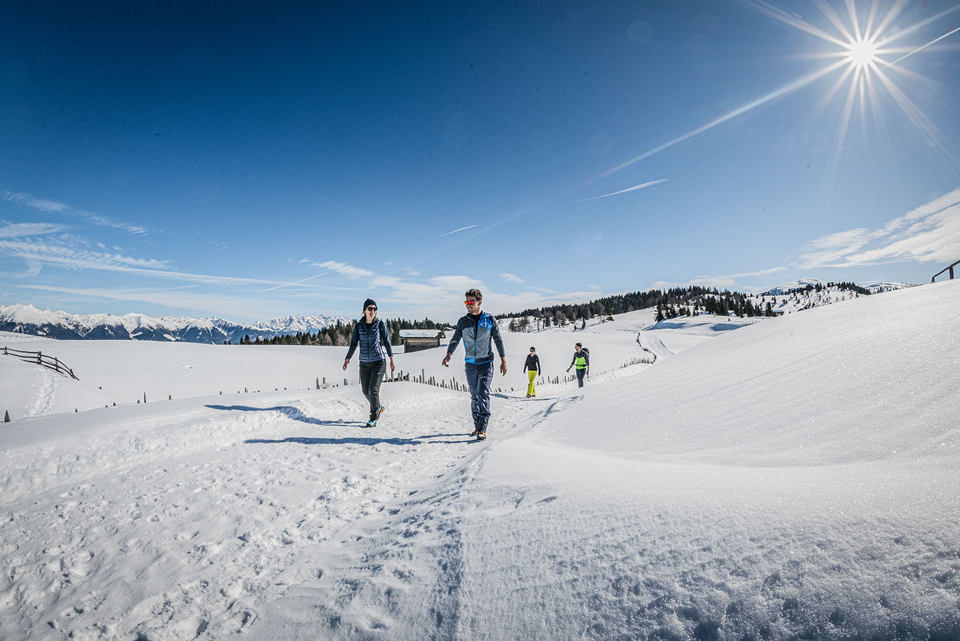 Abseits vom Skitrubel auf dem Kronplatz findet man zahlreiche Winterwanderwege. Tief verschneite Winterlandschaft trifft hier auf winterliche Stille. Wer sich für eine Winterwanderung mit Schneeschuhen entschiedet, kann auch etwas abseits der Wanderwege seine Spuren im Schnee hinterlassen, in die traumhafte, unberührte Natur eintauchen und das unvergessliche Panorama der Dolomiten genießen. Wer gern auf seinen Langlaufskiern unterwegs ist, kann sich auf viele Loipen sowohl im Tal als auch auf verschiedenen Hochebenen freuen.